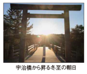 毎年、冬至に伊勢神宮・内宮の宇治橋の大鳥居から昇る朝日。